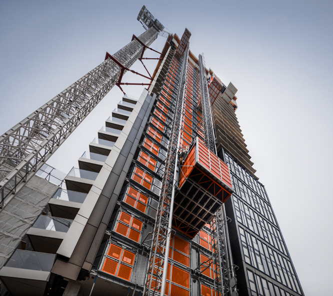 Alimak ofrece elevadores permanentes y temporales de alta calidad, montacargas de construcción y plataformas de trabajo construidos con tecnologías de cremallera y piñón y tracción.