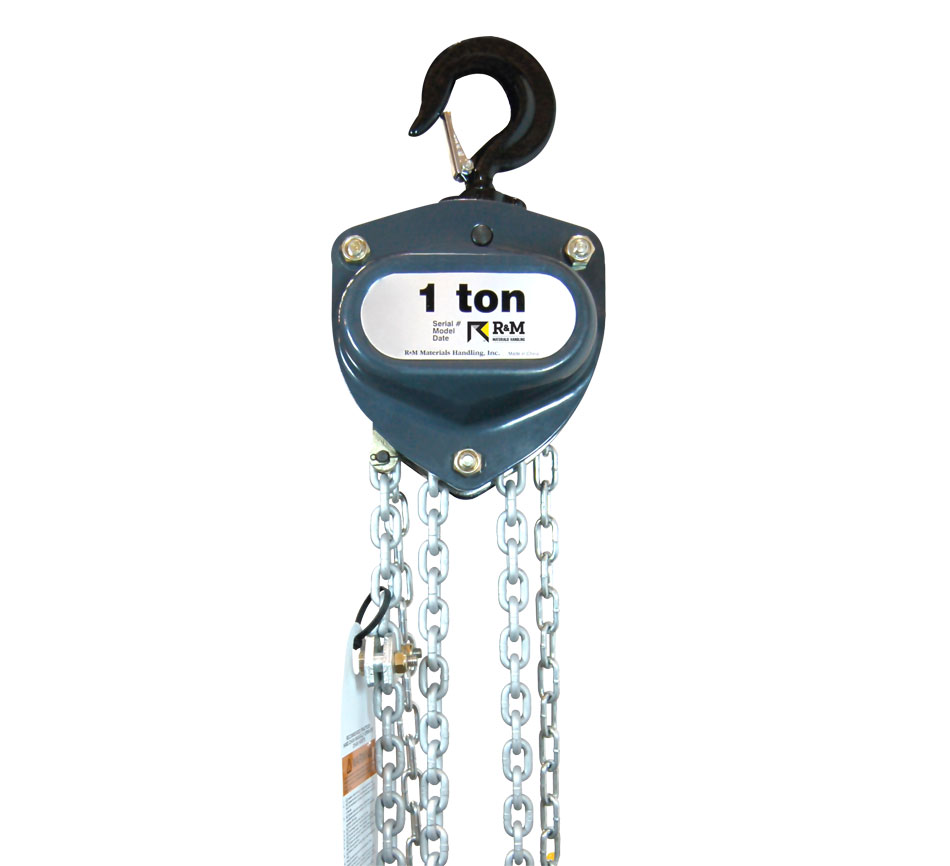 El diseño de gancho superior estándar puede combinarse con una de las opciones de carro manual de R&M, o bien se puede optar por un carro de cadena de arrastre manual integral o un carro de empuje manual (1/2 a 5 toneladas de capacidad).